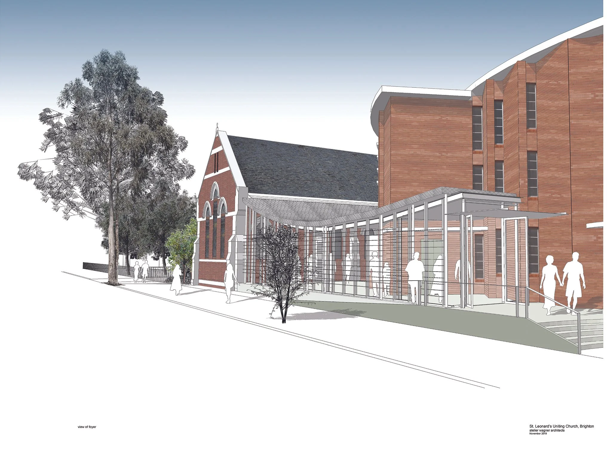 The addition to the original church to offer a modern and architectural entrance and foyer space for meeting prior to entry into the worship. Alongside the entrance the project will offer internal upgrades and refurbishments to modernize the operations of the church and meet current needs / accommodation.